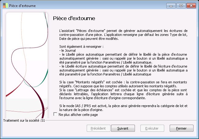 Par défaut, cette date corrrespond à la date système. Il s'agit de la date de pièce et d'écritures servant à la comptabilisation de l'extourne.