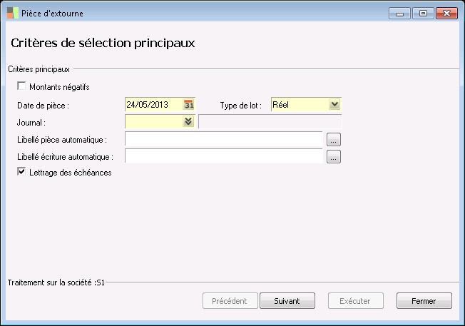 Cette sélection précise le type de lot contenant la pièce d'extourne : Réel ou simulation.