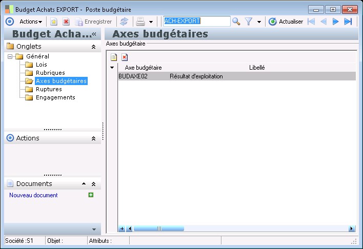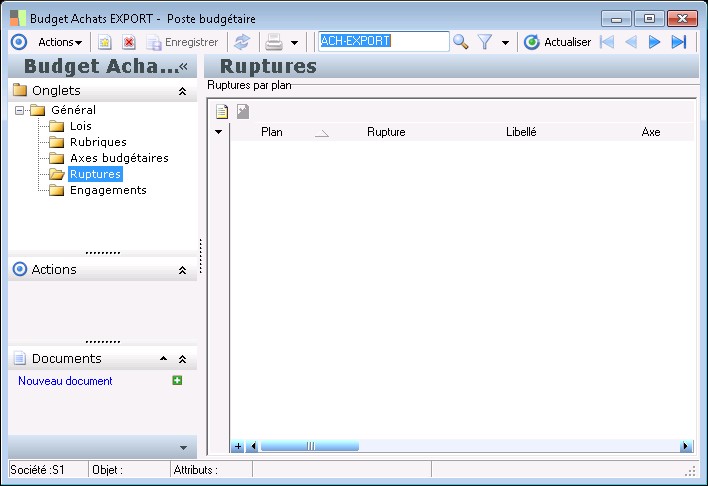 DossierAxes budgétaires Ce dossierpermet d'associer le poste à un ou plusieurs axes budgétaires. Cette association peut également se faire depuis l'écran des axes budgétaires. DossierRuptures Ce dossierpermet la visualisation de(s) rupture(s) auxquelle(s) le poste budgétaire est associé.