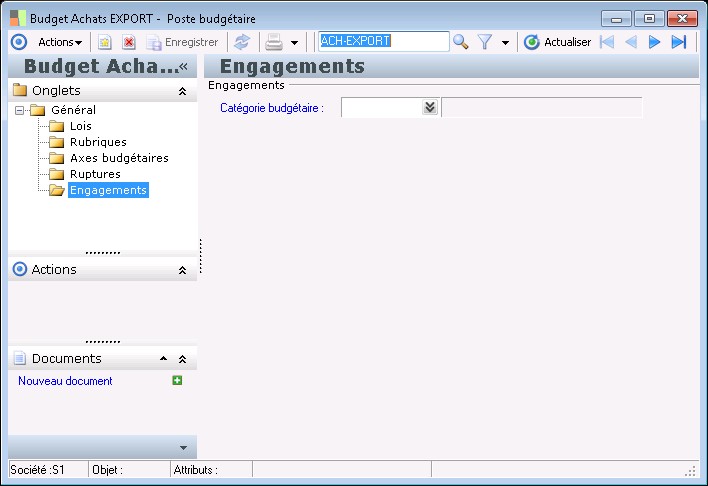 Cette zone permet d'indiquer la catégorie budgétaire du poste budgétaire. Cette catégorie permet de déterminer la nature de validation des engagements en fonction de la nature de la dépense.