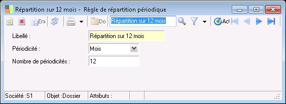 La périodicité précise la durée d'une période c'est-à-dire l'écart de date entre deux répartitions qui se suivent. A noter : la première période pouvant faire l'objet d'un prorata temporis, sa durée pourra être inférieure à la périodicité renseignée.