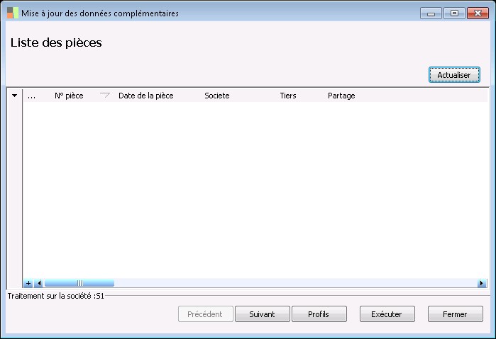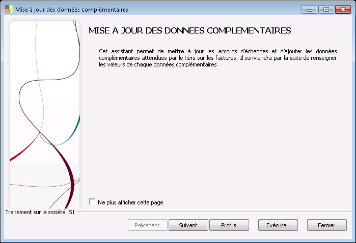 Mettre à jour les données complémentaires : permet de mettre à jour les accords d'échanges et d'ajouter les données complémentaires manquantes sur les factures. Ils faudra par la suite renseigner les valeurs de ces données complémentaires.