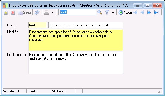 Cette zone correspond au libellé long en anglais de la mention d'exonération.