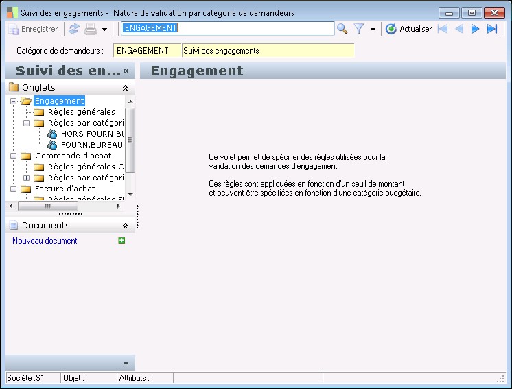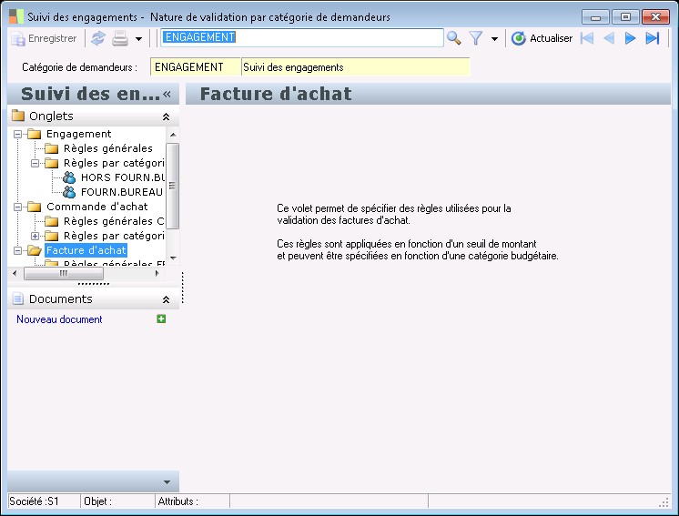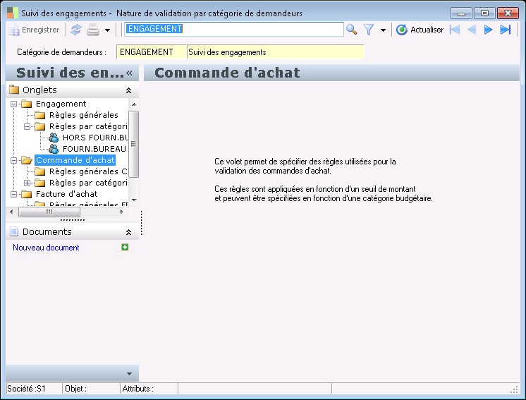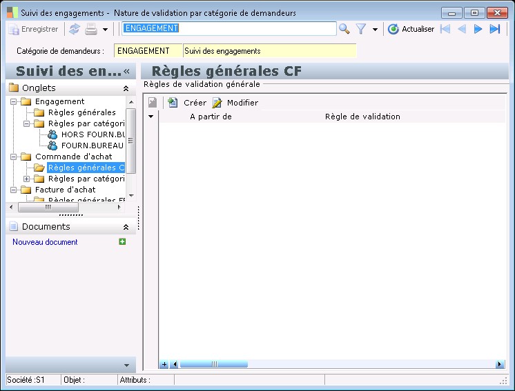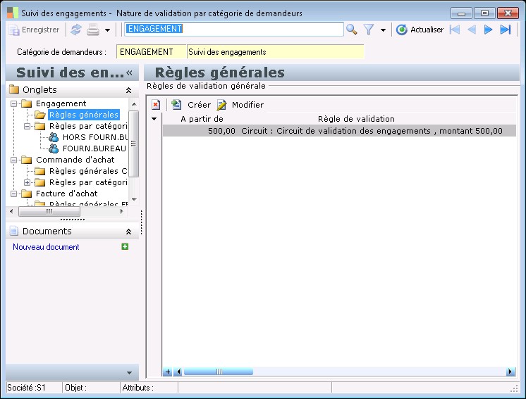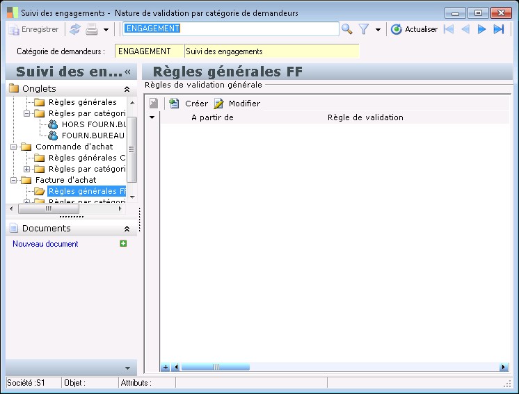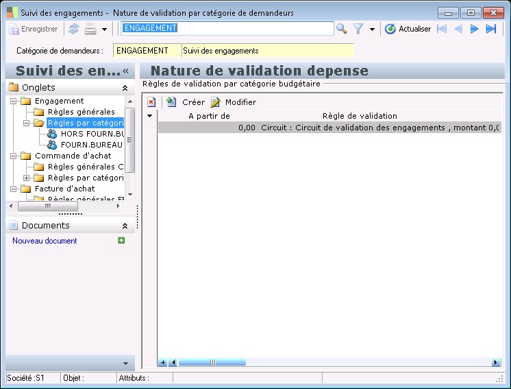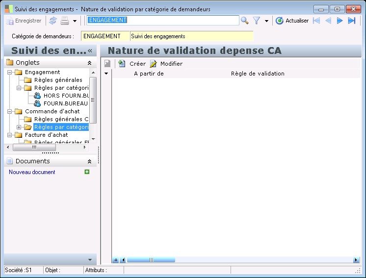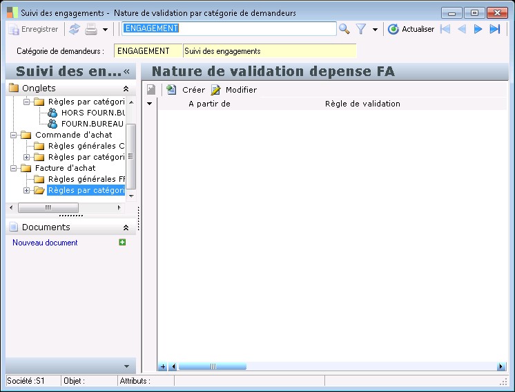 Voir Pour plus d'information sur les règles de validation, voir le § Paramètres / Paramétrage commun / Nature / Natures de validation / Créer règles de validation.
