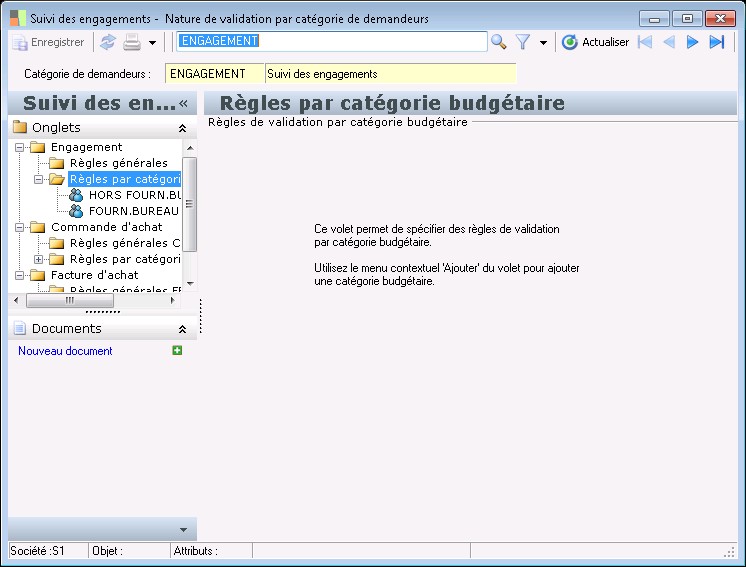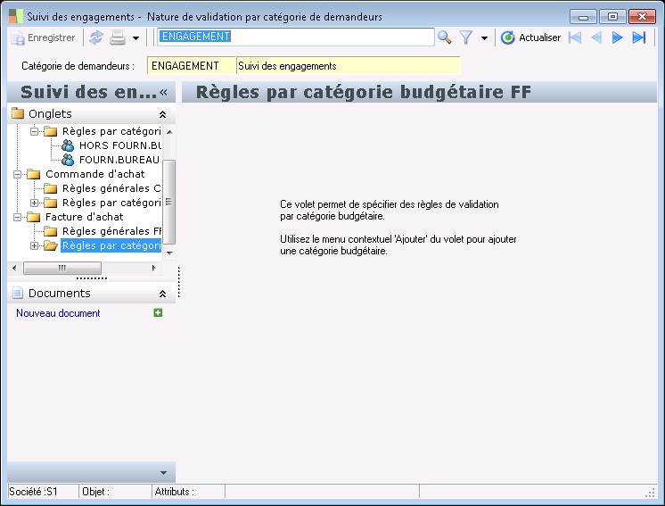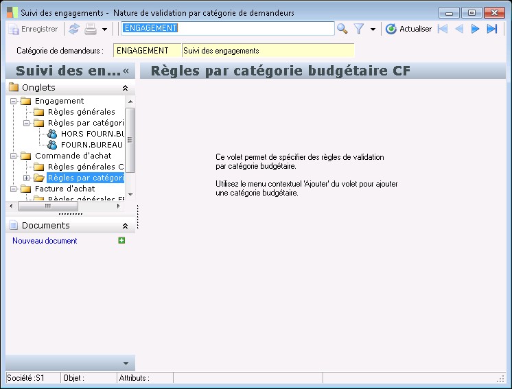 Pour ajouter une catégorie budgétaire au dossier « Règles Catégories Budgétaire », activez la commande Ajouter du menu contextuel et sélectionnez la catégorie budgétaire souhaitée.