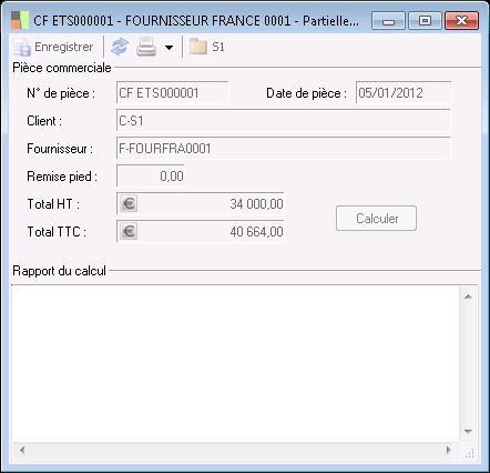 Cette zone permet de saisir un pourcentage de remise de pied de pièce. Ce pourcentage s'applique sur le total HT de la pièce.