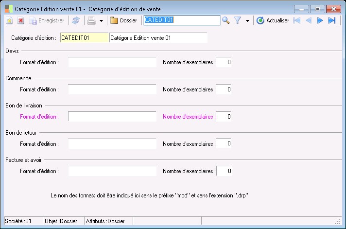 Cette zone mentionne le format d'édition utilisé pour les bons de livraison/réception.