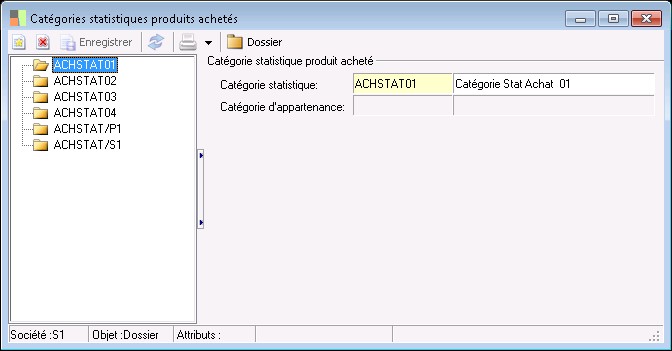 Les catégories statistiques produits permettent de regrouper des produits ayant caractéristiques communes. Elles sont affectées aux produits dans le dossier Achat de leur fiche.