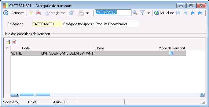Code permettant d'identifier de manière unique la catégorie de transport produit de la pièce de vente.