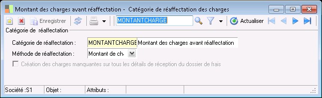 - Montant charge : réaffectation des charges du dossier au prorata du montant des charges existantes au niveau des détails réception impactés (charges partageant le même code).