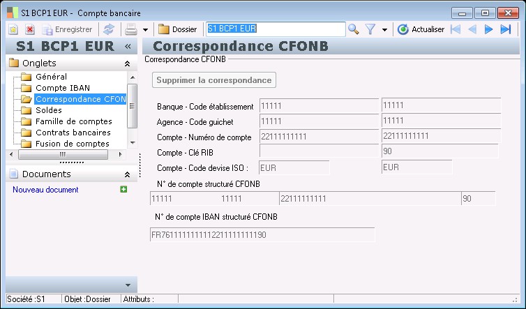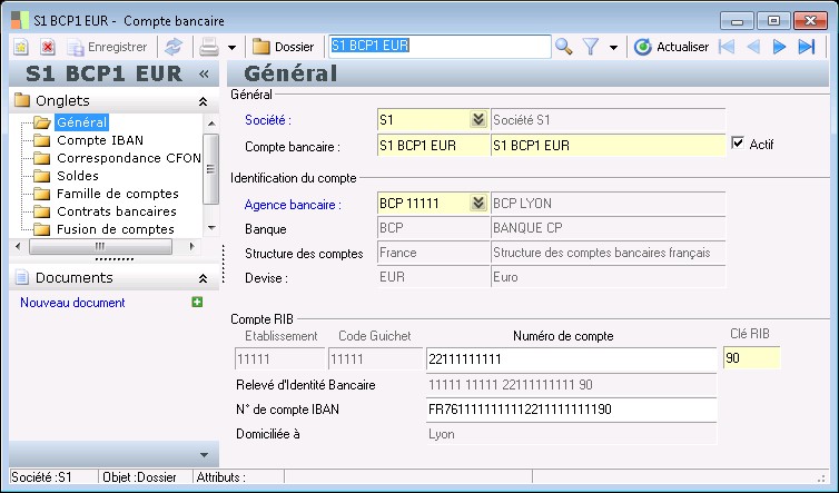 La clé RIB française permet de vérifier que le numéro de compte a été correctement saisi. Ce contrôle peut être désactivé dans la fiche agence bancaire.