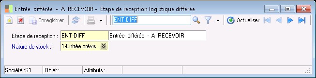 La fenêtre ouverte par cette fonction permet d'enregistrer une étape de réception différée d'un produit logistique. La liste des étapes de réception différée de produits logistiques s'ouvre à partir de la fonction Paramètres / Circuits de réception / Produits logistiques / Etapes de réception différée .