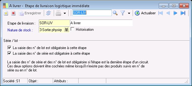 S'il s'agit d'une étape de livraison, il s'agit obligatoirement d'une nature de stock qui réalise une allocation de stock.