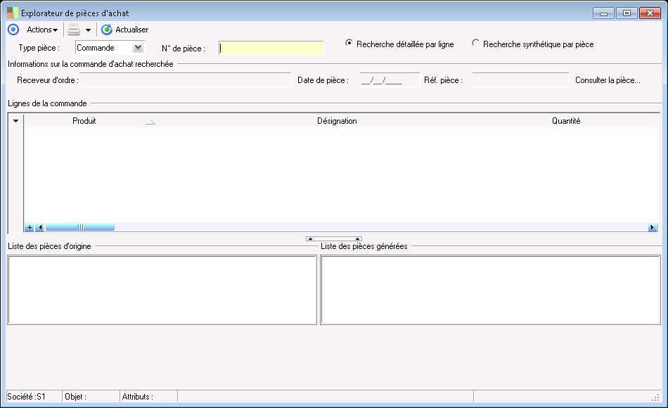 Cette zone permet de sélectionner le type de pièce sur lequel doit s'effectuer la recherche initiale. Il peut s'agir :