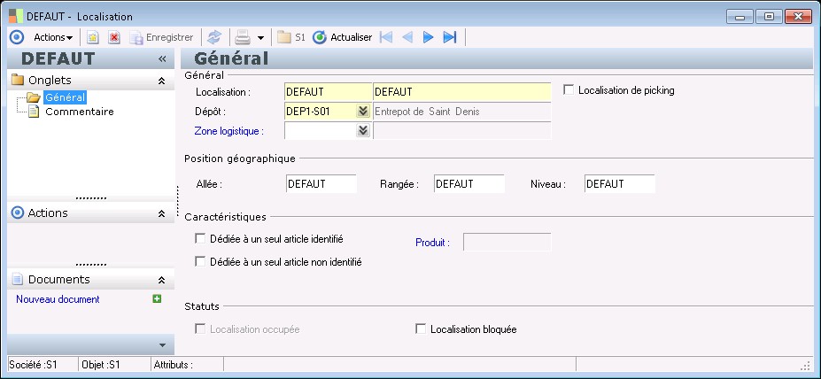 Une localisation est définie pour un dépôt, ce lien est renseigné ici