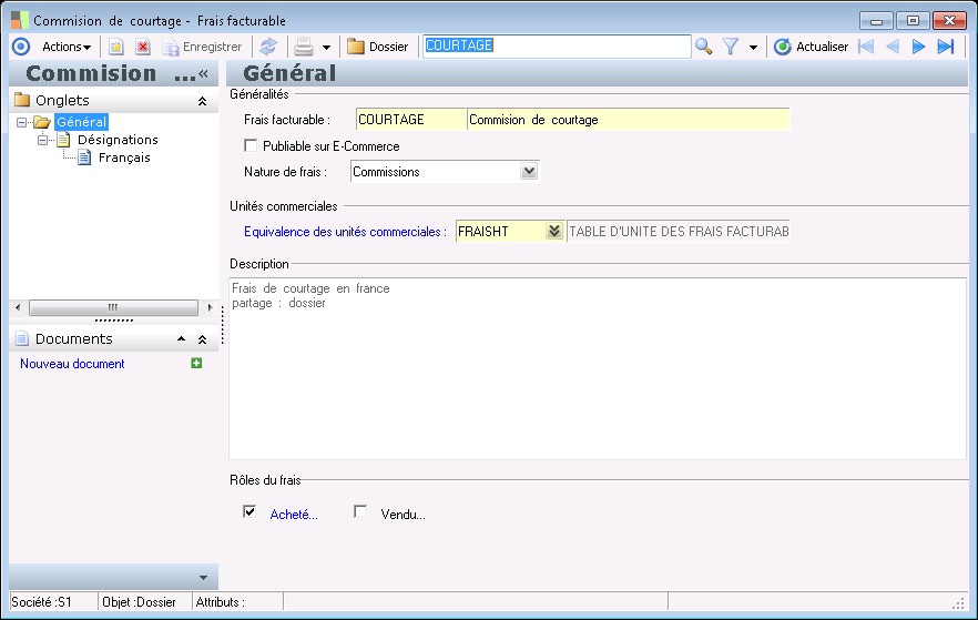 La nature de charge est définie uniquement pour les produits de type frais facturables.