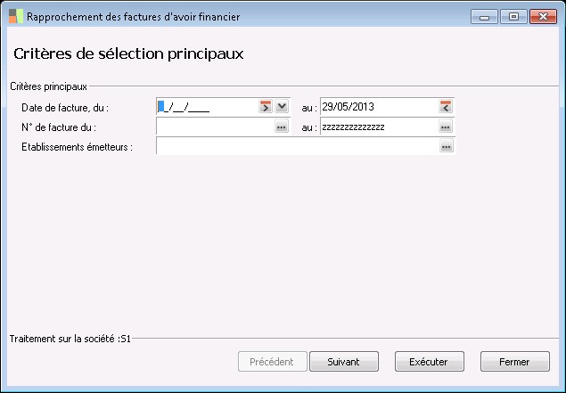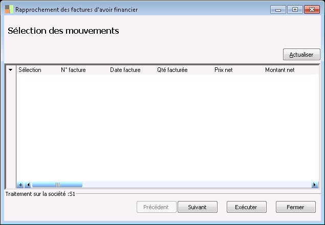 Elle permet de sélectionner une ligne de facture selon certains critères de sélection afin de rapprocher la ligne d'avoir financier saisi d'une ligne de facture et donc de connaître l'origine de l'avoir financier.