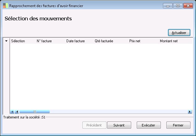 Elle permet de sélectionner une ligne de facture fournisseur afin de la rapprocher d'une ligne d'avoir financier saisie et donc de connaître l'origine de l'avoir financier.