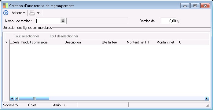 Les remises de type Regroupement sont desremises s'appliquant à un ensemble de lignes ayant la même catégorie de remise et pour lesquelles le programme totalise les quantités achetées et leur applique une remisecommune.