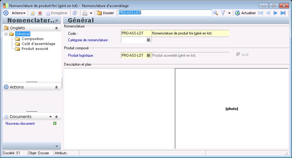 La quantité d'un composant doit être supérieure à 0. Une nomenclature doit comporter un composant au minimum et ce composant doit être actif. Si un composant est déclaré inactif (dans le volet Logistique de sa fiche), il ne pourra pas être sélectionné comme composant. Si, après son enregistrement comme composant il est déclaré inactif, un message d'avertissement signale son appartenance à une nomenclature et invite à supprimer le produit de la nomenclature.