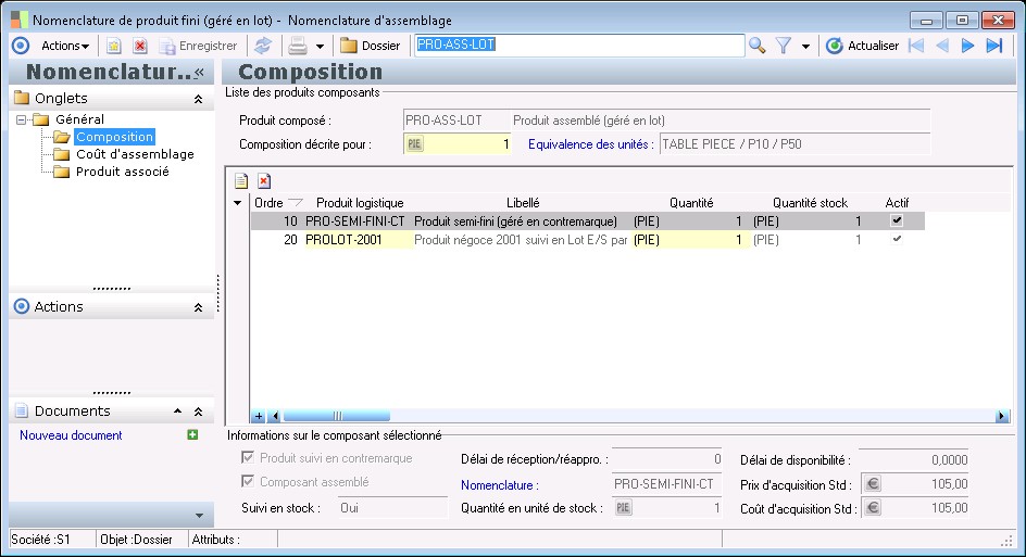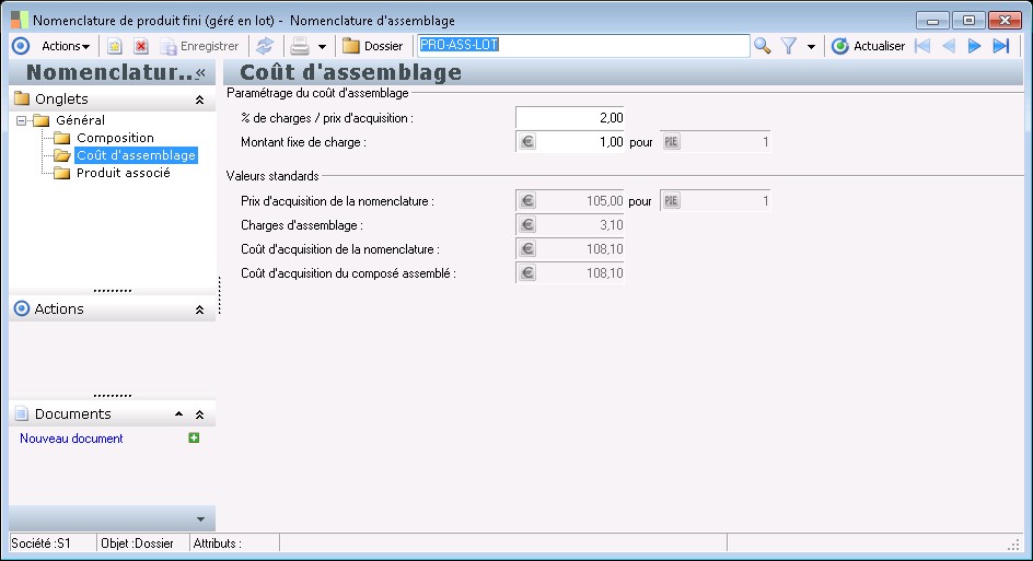 Lorsque le produit livré est assemblé et fait l'objet d'un assemblage, son prix d'acquisition standard est égal par défaut au prix d'acquisition de sa nomenclature.