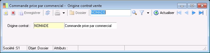 La saisie des codes origines des contrats de vente s'effectue en enregistrant leur code et leur désignation.
