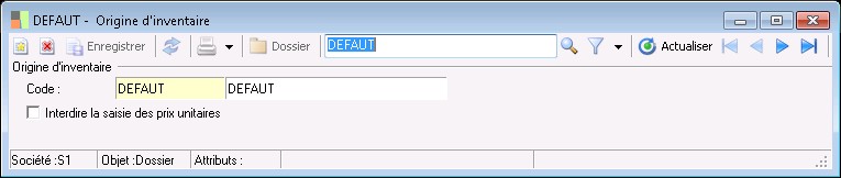 Cette zone permet d'interdire la saisie/modification des prix unitaires des pièces de saisie d'inventaire. Elle permet notamment d'autoriser la saisie du prix dans le cadre d'un premier inventaire au démarrage de la société et de l'interdire par la suite. La valeur du prix unitaire proposée par défaut est définie égale au PAMP/CAMP du produit à date d'inventaire.