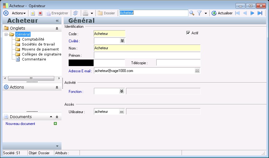 Il s'agit du login utilisateur défini dans la fiche utilisateur de l'Administrateur.