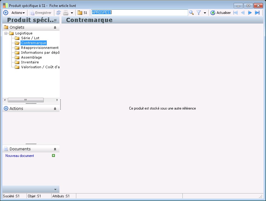 Si l'article est suivi en contremarque, ce volet est vide et un message rappelle ce fait. Le réapprovisionnement et la contremarque sont incompatibles. Pour passer de la gestion de la contremarque à celle de l'approvisionnement, il est nécessaire de décocher l'option Ce produit est suivi en contremarque du volet Contremarque .