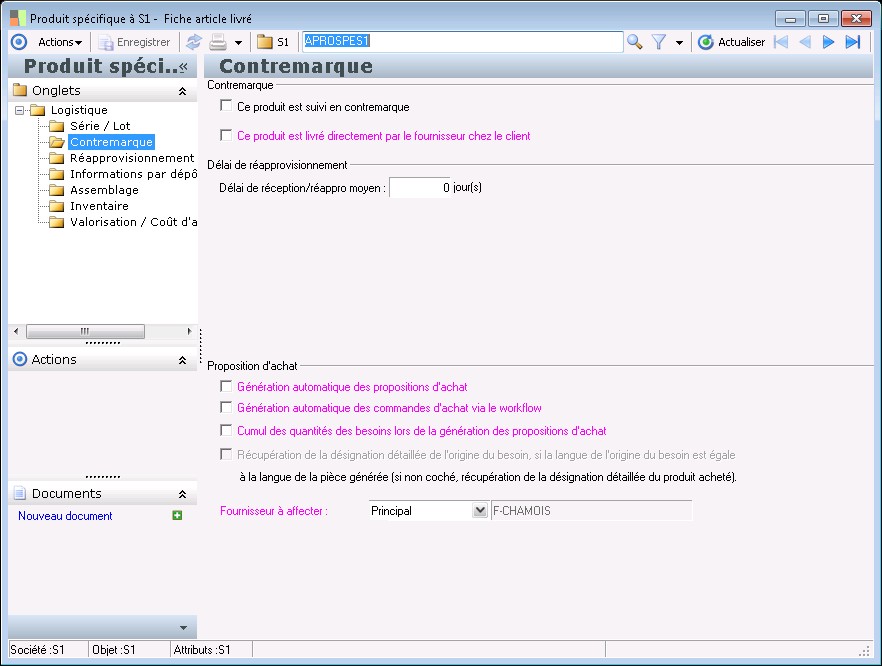 Une case d'option permet de demander que le produit commandé chez le fournisseur soit livré directement au client sans passage par un dépôt de l'entreprise. Il s'agit d'une valeur par défaut qui pourra être contredite lors du traitement des besoins de contremarque.