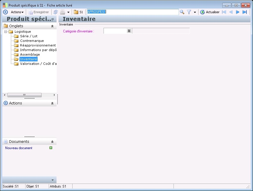 Ce volet sert à l'enregistrement de la catégorie d'inventaire saisie dans