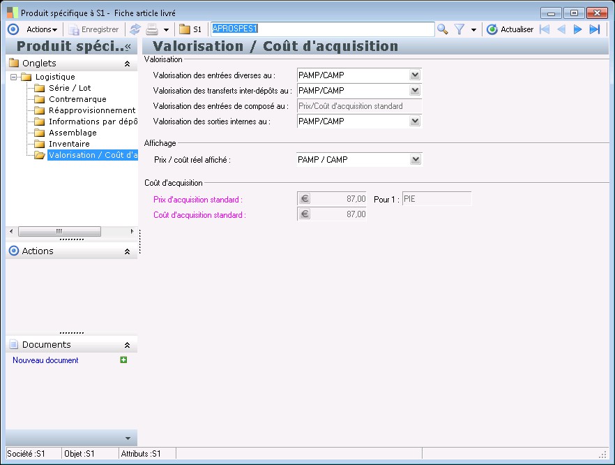 - L'article suivi en stock peut être valorisé aux valeurs PAMP et CAMP