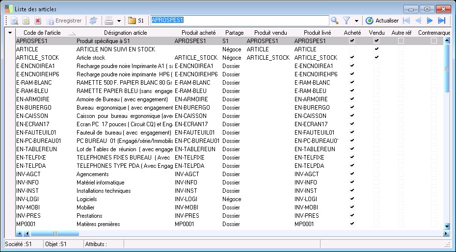 Cette zone représente le code du produit lorsqu'il est livré/réceptionné. Il représente le code interne de gestion du produit. Seuls les articles et les prestations font l'objet d'une livraison ou d'une réception.