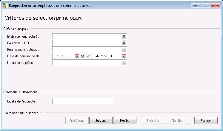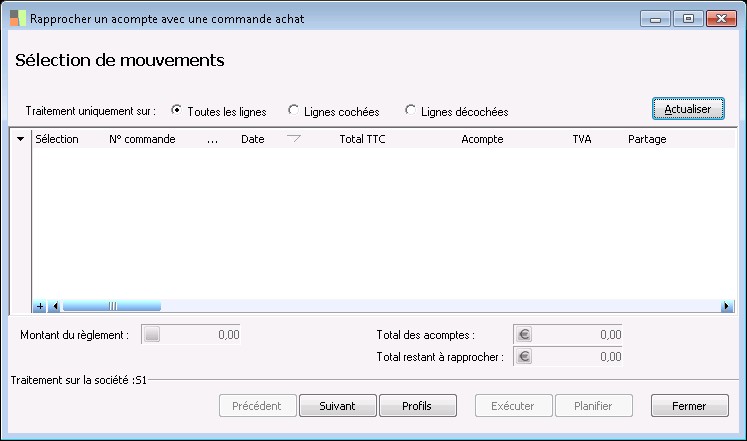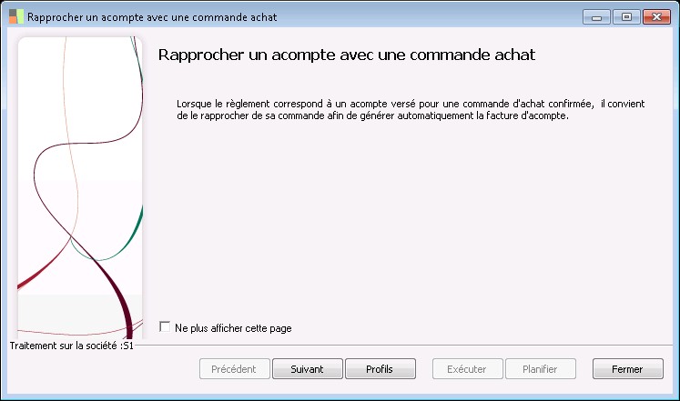 Cet assistant permet de rapprocher un acompte avec une commande d'achat.