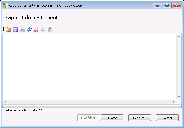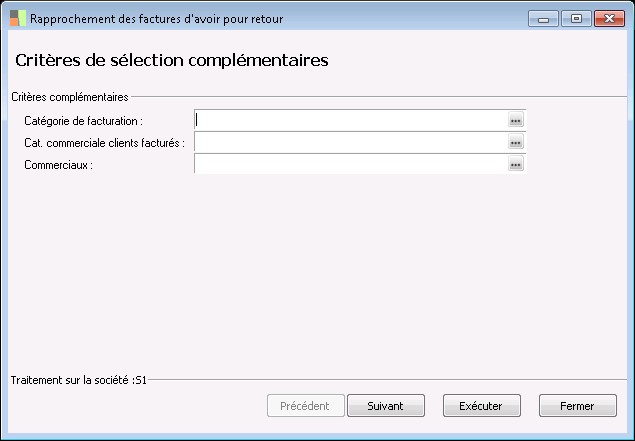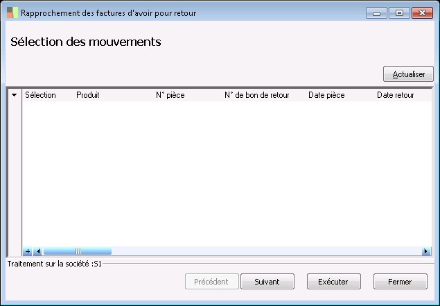 Cette fenêtre d'assistant s'ouvre sur une ligne de facture d'avoir client concernant un avoir sur retour de marchandise, à partir de la commande Rapprocher avoir pour retour du menu contextuel.