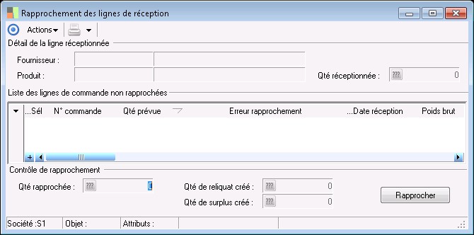Cette zone indique la quantité des lignes de commandes rapprochées avec la ligne de réception saisie.