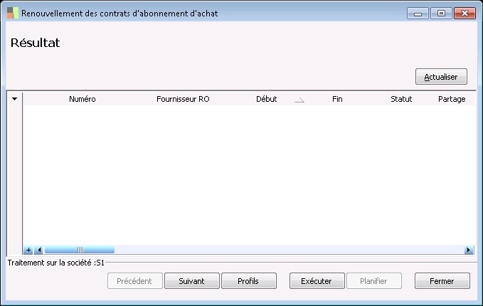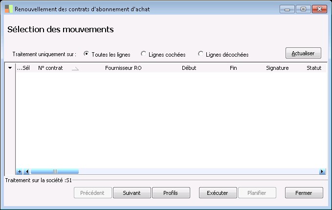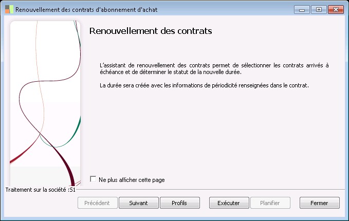 Cette commande ouvre l'assistant de renouvellement des contrats, disponible :