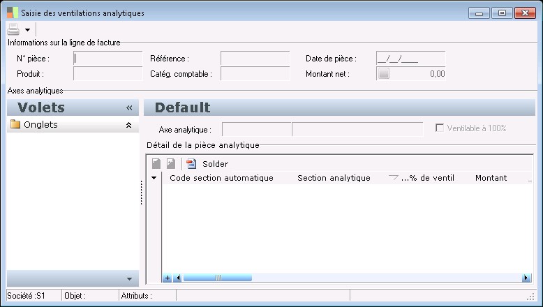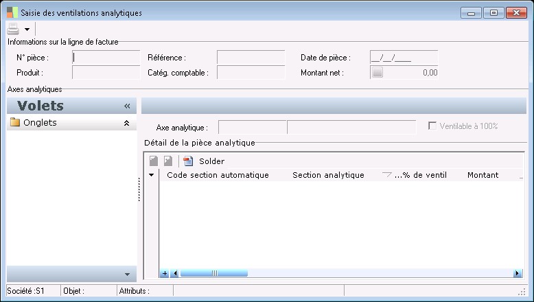 Indique le montant de la ventilation analytique. Ce montant est saisi ou calculé d'après le % de ventilation indiqué.