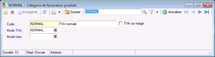 Cette fenêtre sert à l'enregistrement des catégories de facturation en précisant :