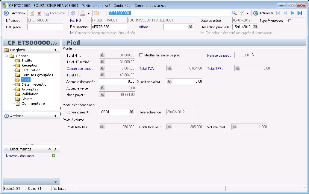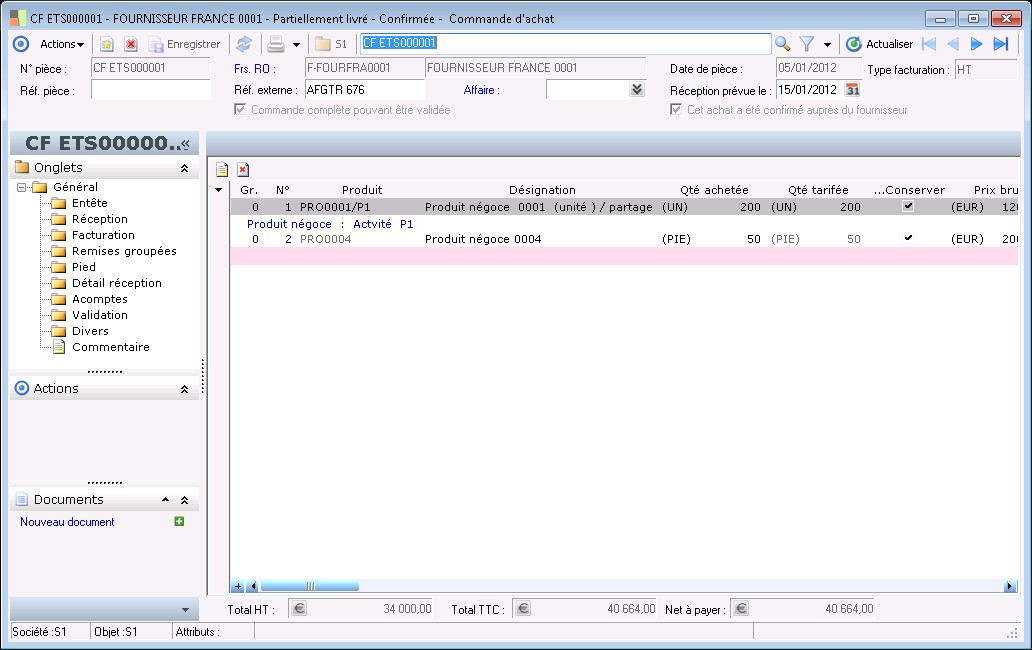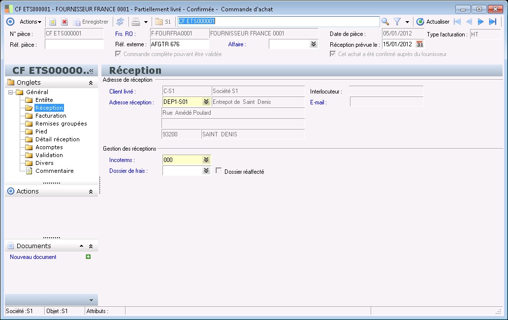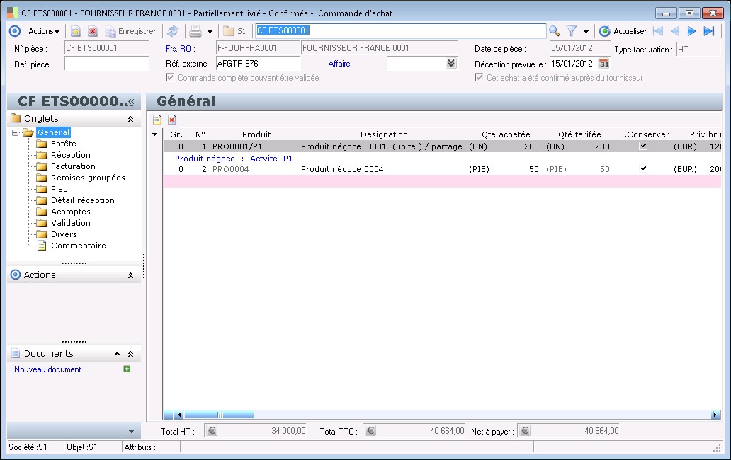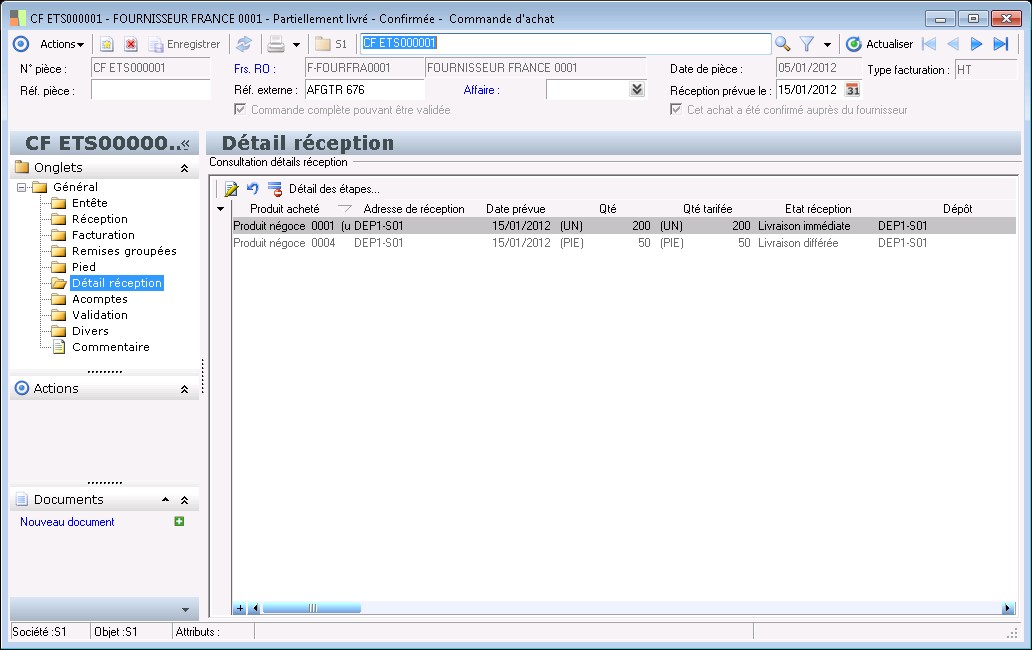 En achat, il est possible de passer une commande à un fournisseur et de demander la livraison chez un client.