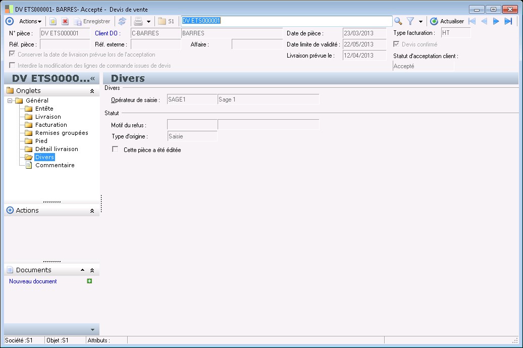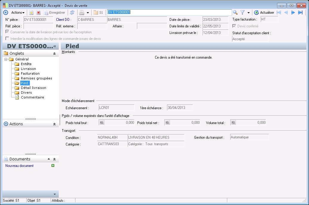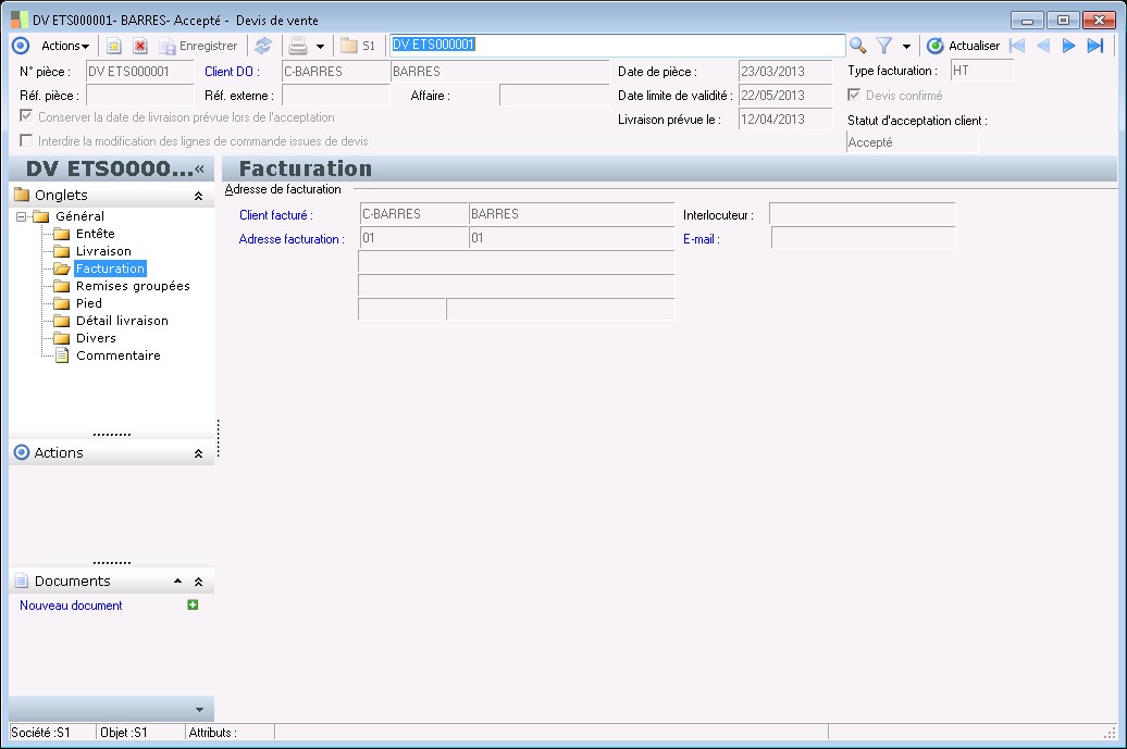 La pièce commerciale identifie un tiers Livré : tiers qui sera livré. Les clients livrés proposés sont les clients livrés du client donneur d'ordre.
