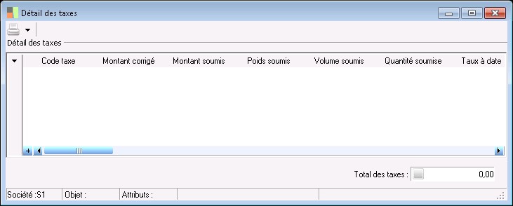 Cette zone représente le total du volume pour la taxe et la pièce commerciale. Cette donnée sert de base au calcul des taxes basées sur le volume. Ce volume est sauvegardé au niveau de la base de donnée dans l'unité de calcul des volumes renseignée au niveau des paramètres généraux (volet Unités de référence).