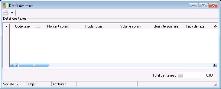 Cette zone représente le total du volume pour la taxe et la pièce commerciale. Cette donnée sert de base au calcul des taxes basées sur le volume. Ce volume est sauvegardé au niveau de la base de donnée dans l'unité de calcul des volumes renseignée au niveau des paramètres généraux (volet Unités de référence).