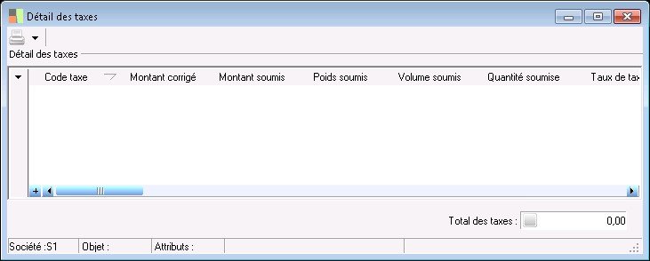 Cette zone représente le total du volume pour la taxe et la pièce commerciale. Cette donnée sert de base au calcul des taxes basées sur le volume. Ce volume est sauvegardé au niveau de la base de donnée dans l'unité de calcul des volumes renseignée au niveau des paramètres généraux (volet Unités de référence).