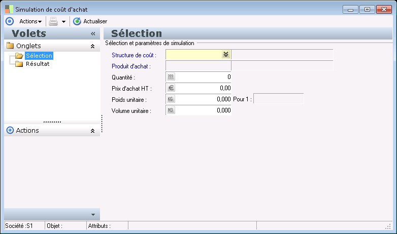 Saisissez le volume unitaire pour la simulation.