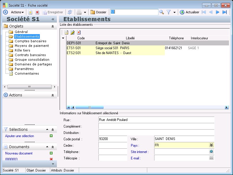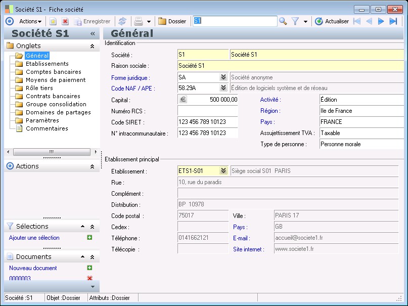 Cette zone permet de renseigner le pays d'après les informations contenues dans la table des pays. Le pays proposé par défaut correspond à celui de l'établissement indiqué dans la fiche société.