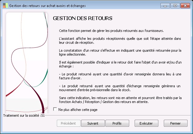 Cette quantité peut faire l'objet soit d'un avoir, soit d'un échange à l'identique, soit d'une mise en attente en cas d'indécision sur la suite à donner au retour (Traitement ultérieur en avoir ou échangement cf. Gestion des retours en attente).