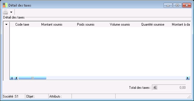 Cette zone représente le total du volume pour la taxe et la pièce commerciale. Cette donnée sert de base au calcul des taxes basées sur le volume. Ce volume est sauvegardé au niveau de la base de donnée dans l'unité de calcul des volumes renseignée au niveau des paramètres généraux (volet Unités de référence).