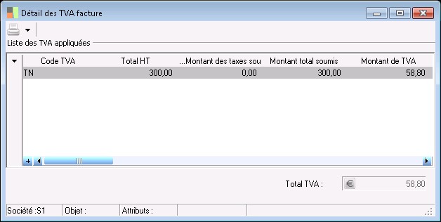 Montant calculé de la TVA qui sert dans les pièces commerciales et facturations. Ce calcul est réalisé sur les bases de TVA auxquelles sont appliquées les taux de TVA paramétrés en fonction du régime et des articles choisis.
