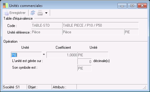 Permet de sélectionner l'unité commerciale servant d'unité de référence pour gérer les équivalences entre unités commerciales.